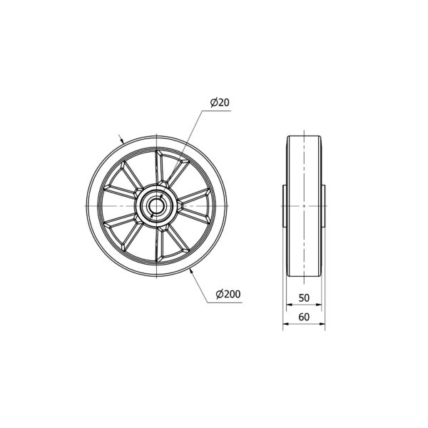 Rueda poliuretano aro suelto Alex diametro 200 mm. 2-2549