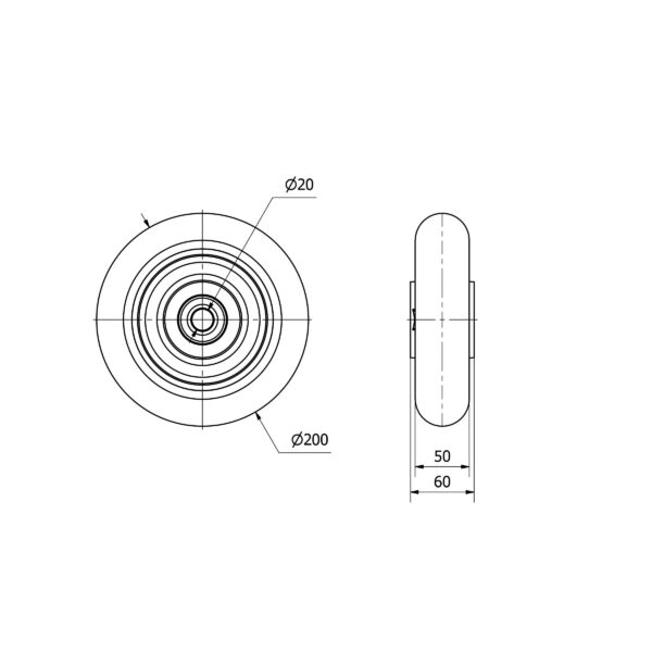 Rueda poliuretano aro suelto Alex diametro 200 mm. 2-3314