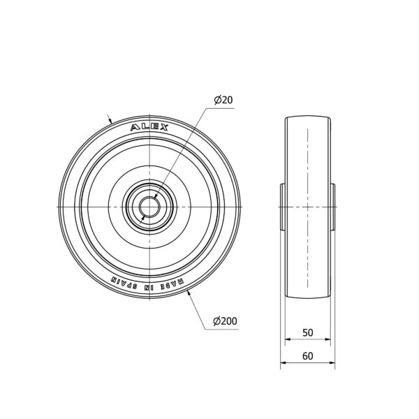 Rueda poliuretano aro suelto Alex diametro 200 mm. modelo 2-3446