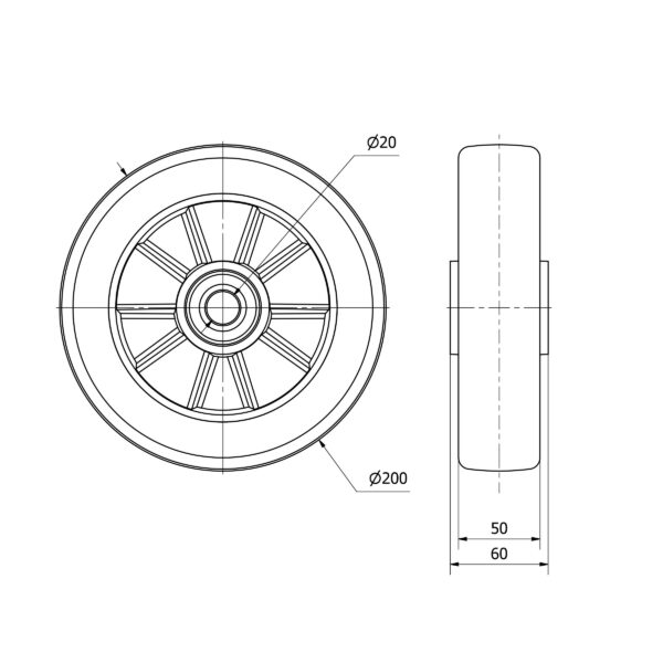 Rueda poliuretano aro suelto Alex diametro 200 mm. modelo 4-1641