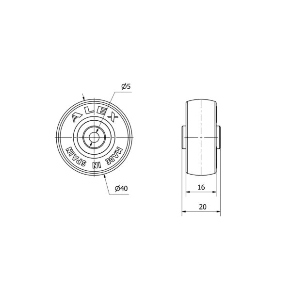 Rueda poliuretano aro suelto Alex diametro 40 mm. modelo 2-2559 EAN 8422202225593