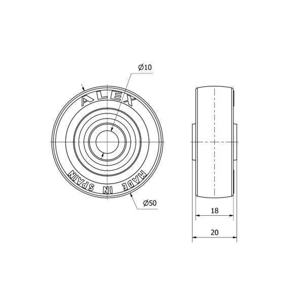 Rueda poliuretano aro suelto Alex diametro 50 mm. modelo 2-2560