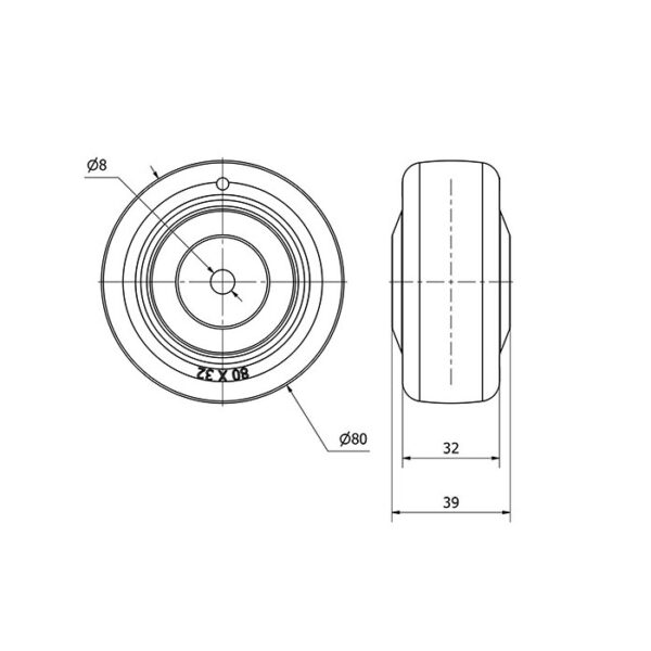 Rueda poliuretano aro suelto Alex diametro 80 mm. 2-1602
