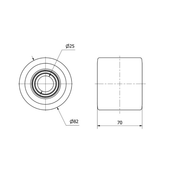 La serie de aros Alex KI son aros de poliuretano inyectado de color marrón, con cojinete de bolas. Rango de temperatura: -20ºC. a +80ºC.