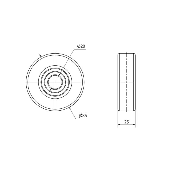 Rodamiento de bolas recubierto de poliuretano vulcanizado. Color naranja. Rango de temperatura -30º + 80º.