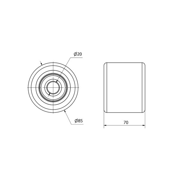 La serie de aros Alex VN son aros de poliuretano vulcanizado de color naranja, con cojinete de bolas. Rango de temperatura: -20ºC. a +60ºC.