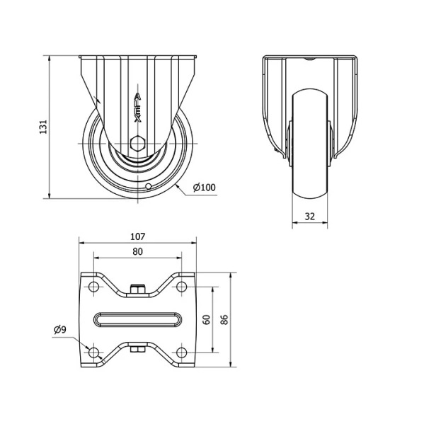 Rueda poliuretano fija Alex diametro 100 mm. 2-0514