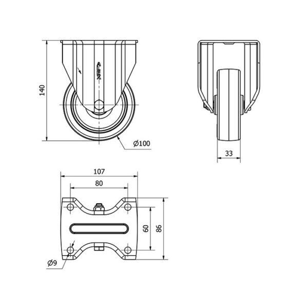 Rueda poliuretano fija Alex diametro 100 mm. modelo 2-0304 EAN 8422202203041
