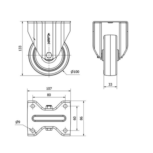 Rueda poliuretano fija Alex diametro 100 mm. modelo 2-1171