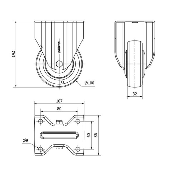 Rueda poliuretano fija Alex diametro 100 mm. modelo 2-1589