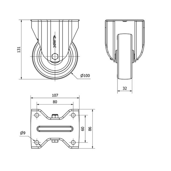 Rueda poliuretano fija Alex diametro 100 mm. modelo 2-2423