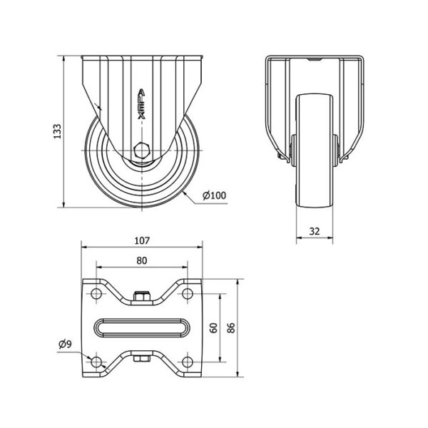 Rueda poliuretano fija Alex diametro 100 mm. modelo 2-2867