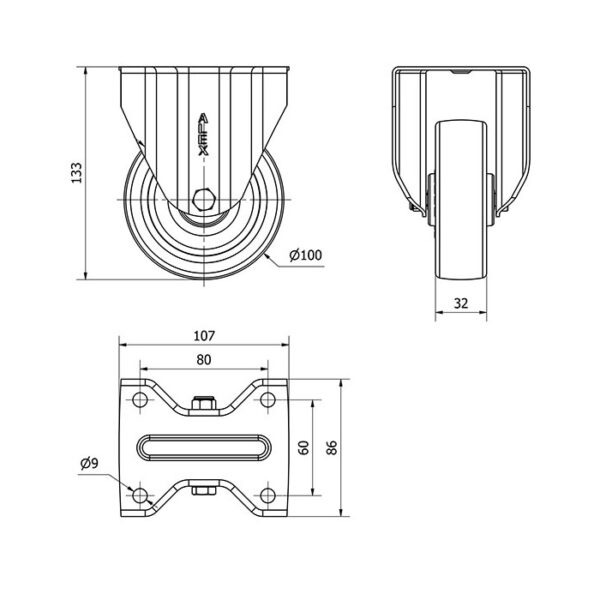 Rueda poliuretano fija Alex diametro 100 mm. modelo 2-2948