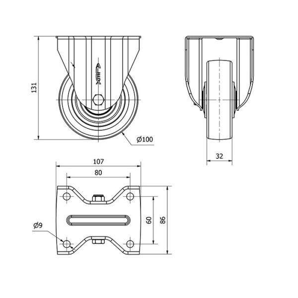 Rueda poliuretano fija Alex diametro 100 mm. modelo 2-4228