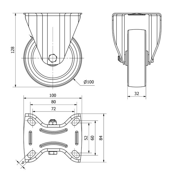 Rueda poliuretano fija Alex diametro 100 mm. modelo TW0215 EAN 8422202002156