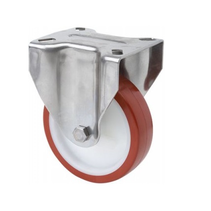 La serie de ruedas Alex ZVI INOX-POL son de poliuretano inyectado, con todos sus componentes de acero inoxidable (AISI-304), indicadas para soportar cargas hasta 300 Kg. Se utilizan en exteriores, carros de transporte de alimentación, cantinas, comedores, restaurantes, empresas de alimentación, máquinas de embalajes, cintas transportadoras, construcciones inoxidables, maquinaria ligera para la construcción, contenedores, jaulas de transporte, granjas avícolas, químicas, cadenas alimentación, frigoríficos, arcones y congeladores. POL: Gran duración sin desgaste. Alta resistencia a los aceites y grasas. Silenciosas, limpias e indeformables.