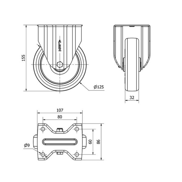 Rueda poliuretano fija Alex diametro 125 mm. modelo 2-2934