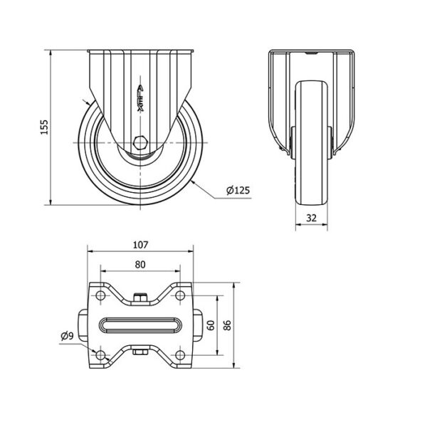 Rueda poliuretano fija Alex diametro 125 mm. modelo 2-2949