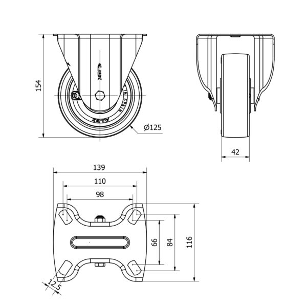 Rueda poliuretano fija Alex diametro 125 mm. modelo 2-3713