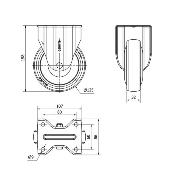Rueda poliuretano fija Alex diametro 125 mm. modelo 2-4834