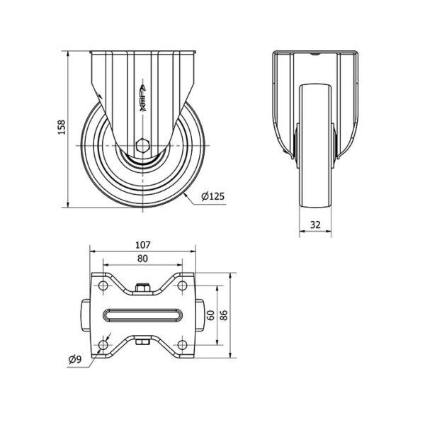 Rueda poliuretano fija Alex diametro 125 mm. modelo 2-4894