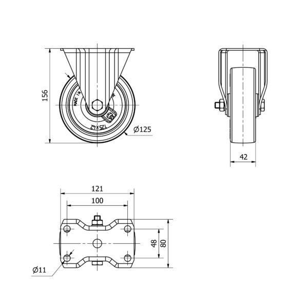 Rueda poliuretano fija Alex diametro 125 mm. modelo 4-0265 EAN 8422202402659