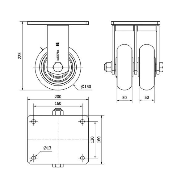 Rueda poliuretano fija Alex diametro 150 mm. 2-0037
