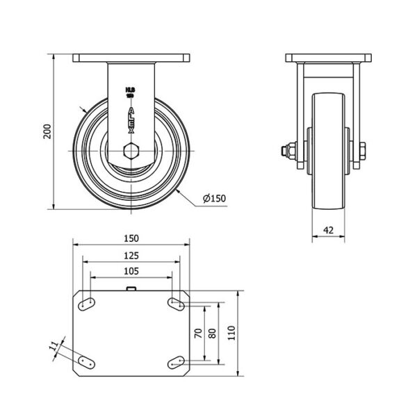 Rueda poliuretano fija Alex diametro 150 mm. modelo 2-0496