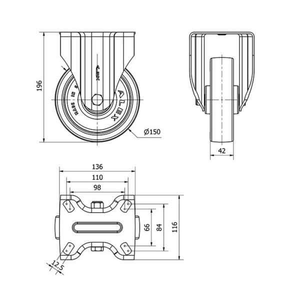 Rueda poliuretano fija Alex diametro 150 mm. modelo 2-3481