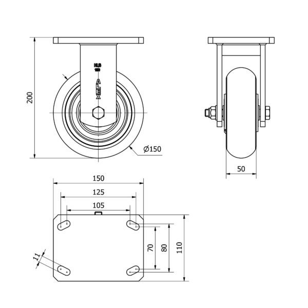 Rueda poliuretano fija Alex diametro 150 mm. modelo 2-3536