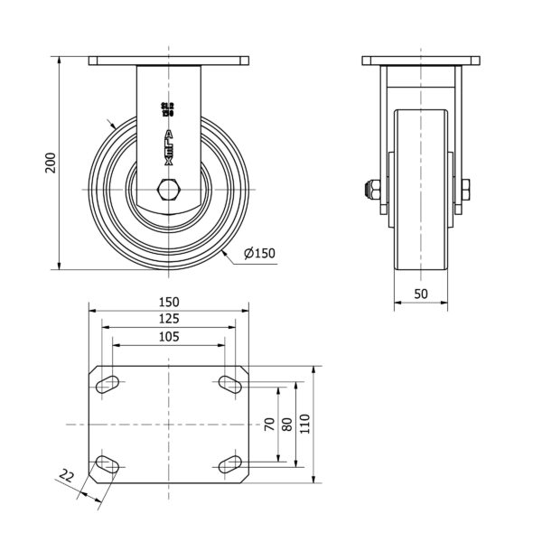Rueda poliuretano fija Alex diametro 150 mm. modelo 2-3665
