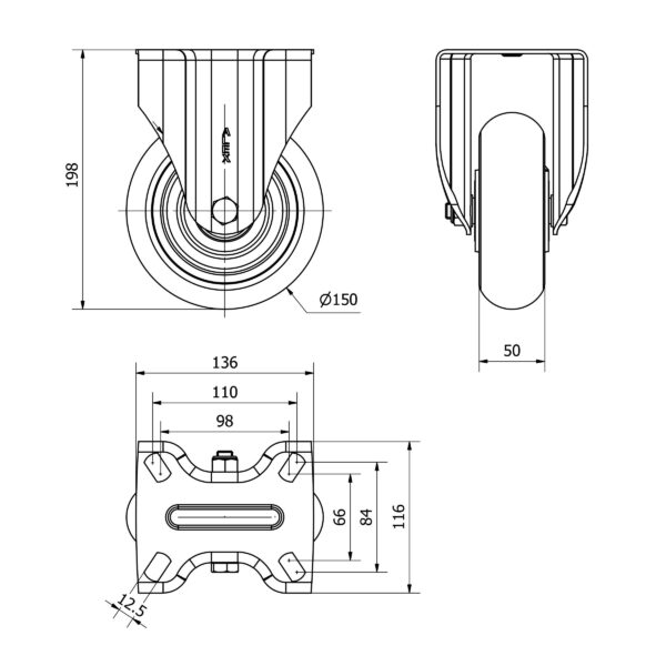Rueda poliuretano fija Alex diametro 150 mm. modelo 2-3858