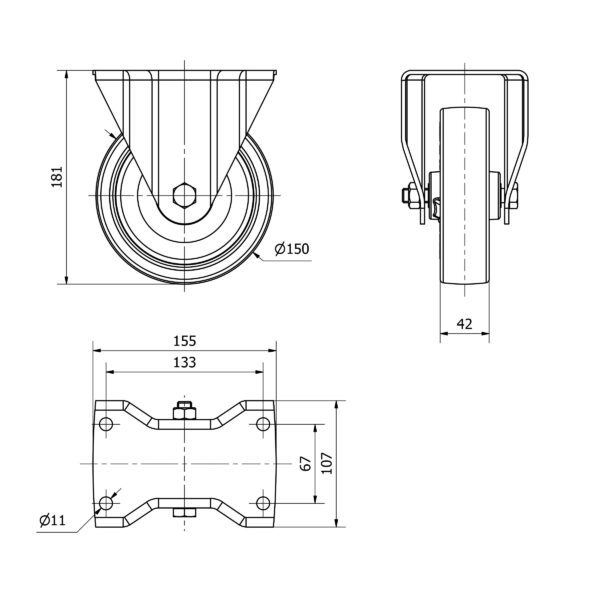 Rueda poliuretano fija Alex diametro 150 mm. modelo 4-0268