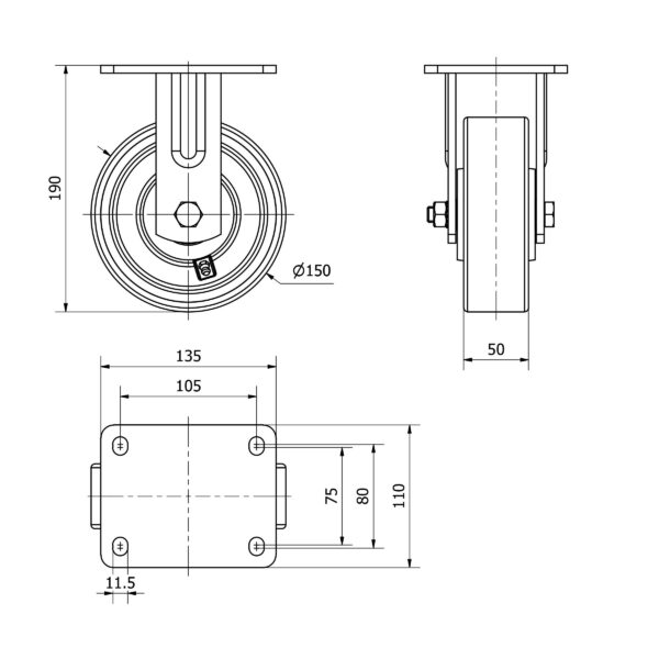 Rueda poliuretano fija Alex diametro 150 mm. modelo 4-0803