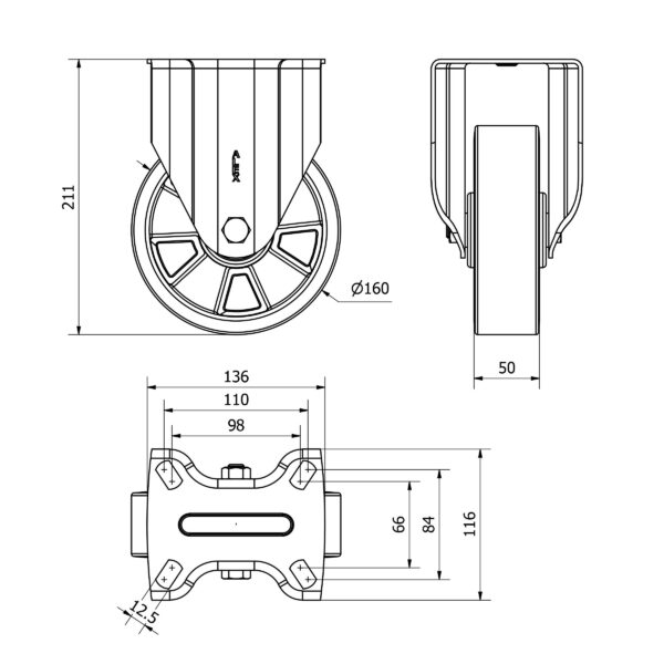 Rueda poliuretano fija Alex diametro 160 mm. modelo 2-3609