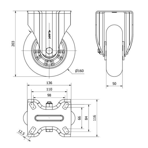 Rueda poliuretano fija Alex diametro 160 mm. modelo 2-3967 EAN 8422202239675