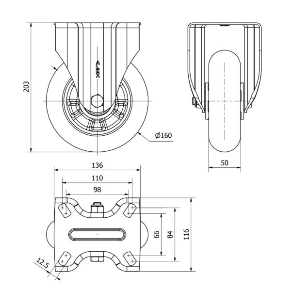 Rueda poliuretano fija Alex diametro 160 mm. modelo 2-4381