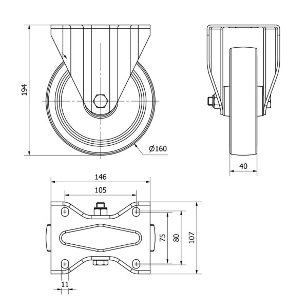 Rueda poliuretano fija Alex diametro 160 mm. modelo TW0309