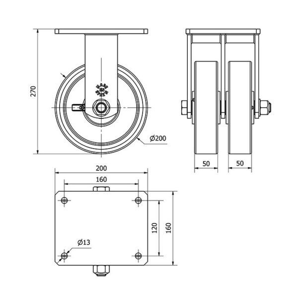 Rueda poliuretano fija Alex diametro 200 mm. 2-1869