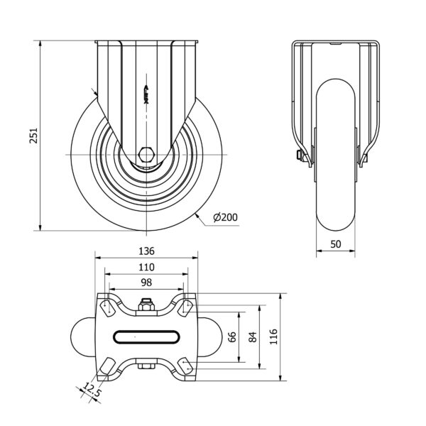 Rueda poliuretano fija Alex diametro 200 mm. 2-3531