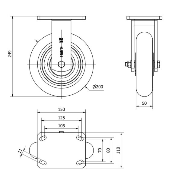 Rueda poliuretano fija Alex diametro 200 mm. 2-3537