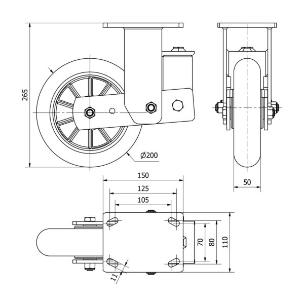 Rueda poliuretano fija Alex diametro 200 mm. 2-4057