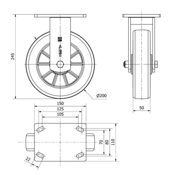Rueda poliuretano fija Alex diametro 200 mm. 2-4192