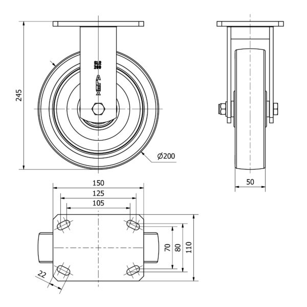 Rueda poliuretano fija Alex diametro 200 mm. modelo 2-3660