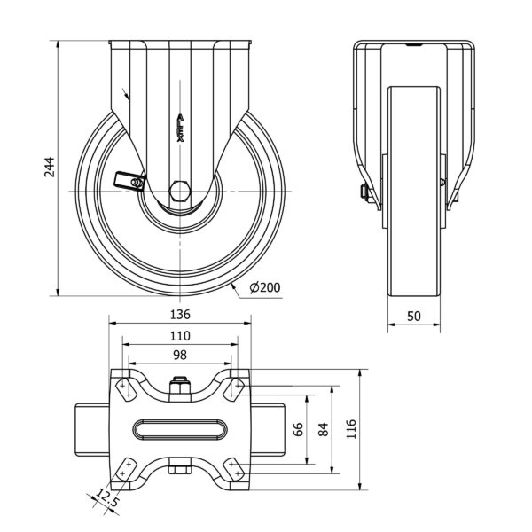 Rueda poliuretano fija Alex diametro 200 mm. modelo 2-3870