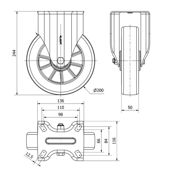 Rueda poliuretano fija Alex diametro 200 mm. modelo 2-4188