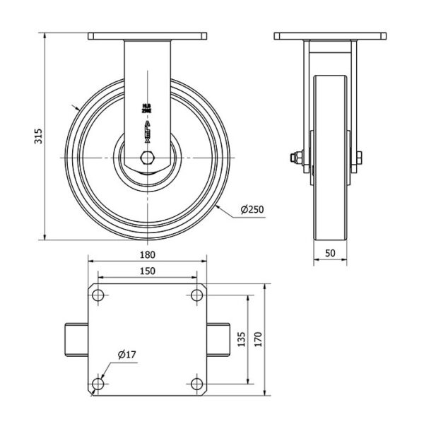Rueda poliuretano fija Alex diametro 250 mm. modelo 2-1760