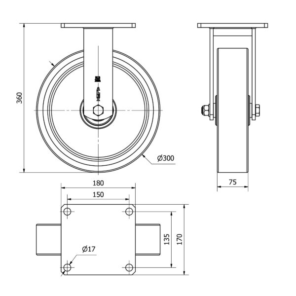 Rueda poliuretano fija Alex diametro 300 mm. modelo 2-3434