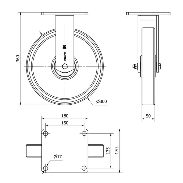 Rueda poliuretano fija Alex diametro 300 mm. modelo 4-1231 EAN 8422202412313