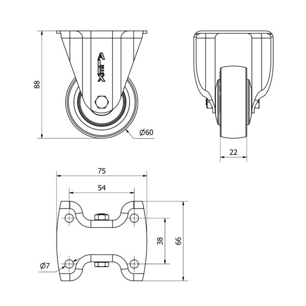 Rueda poliuretano fija Alex diametro 60 mm. modelo 2-4338